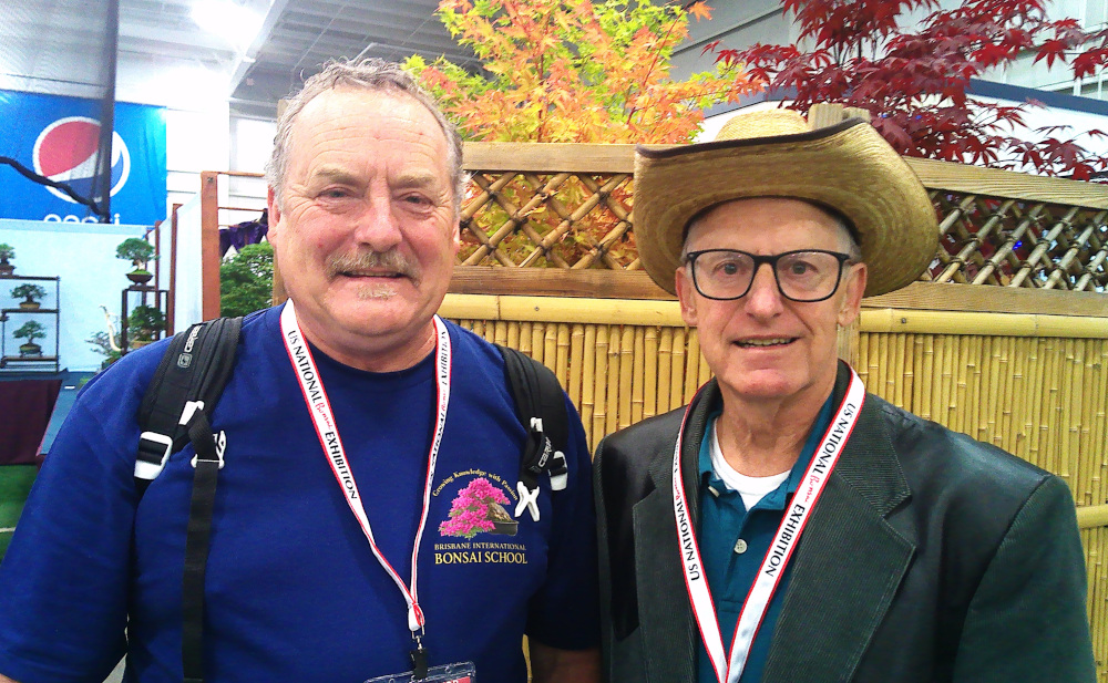 Additionally, I finally got to see Bill Valavanis' place on Sunday. On Saturday, I stopped by one of the three video crews roaming the exhibition, and introduced myself. This led to me being drafted for a 15-minute interview on camera as part of a documentary about Bill that the crews were assembling. I was able to reverently touch the foliage and trunk of a shohin Matsudaira maple that was on display from Bill's collection.