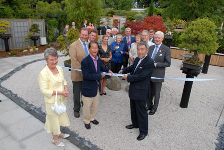 at Wisley with Ambassador Nogami, Mr Peter Buckley, Jim Gardiner and friends. (Photo from Herons Bonsai's article "The Wisley Bonsai Garden") |